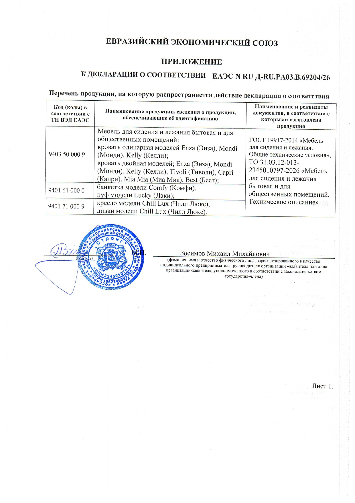Мы заботимся о стандартах нашей продукции и регулярно проходим сертификацию качества матрасов, кроватей, постельного белья, материалов и тканей (всего 50 сертификатов).