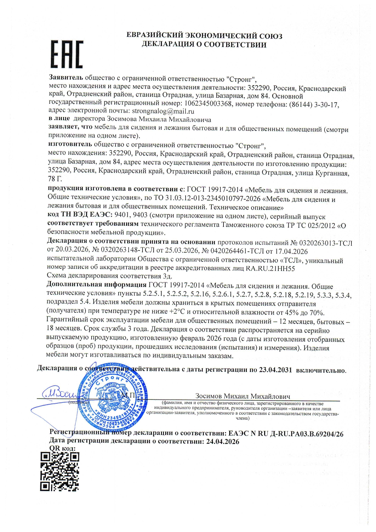 Сертификаты на продукцию компании